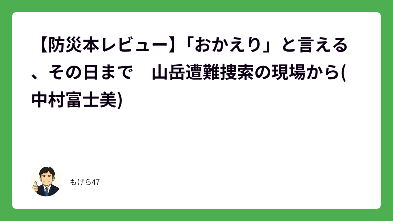 【防災本レビュー】「おかえり」と言える、その日まで 山岳遭難捜索の現場から(中村富士美)