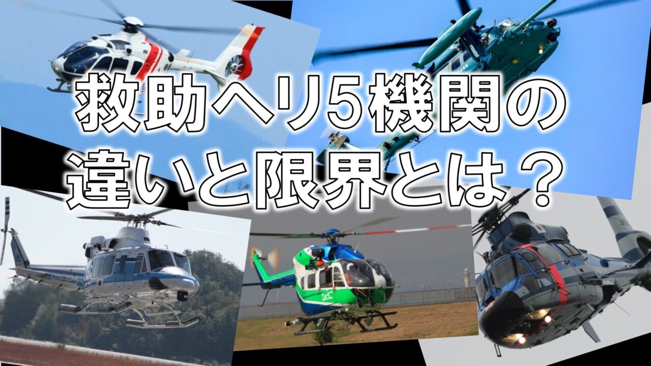 では、ヘリコプターで人命救助をする国内の5種類の機関の任務の違いと、共通の制約について解説しますね。